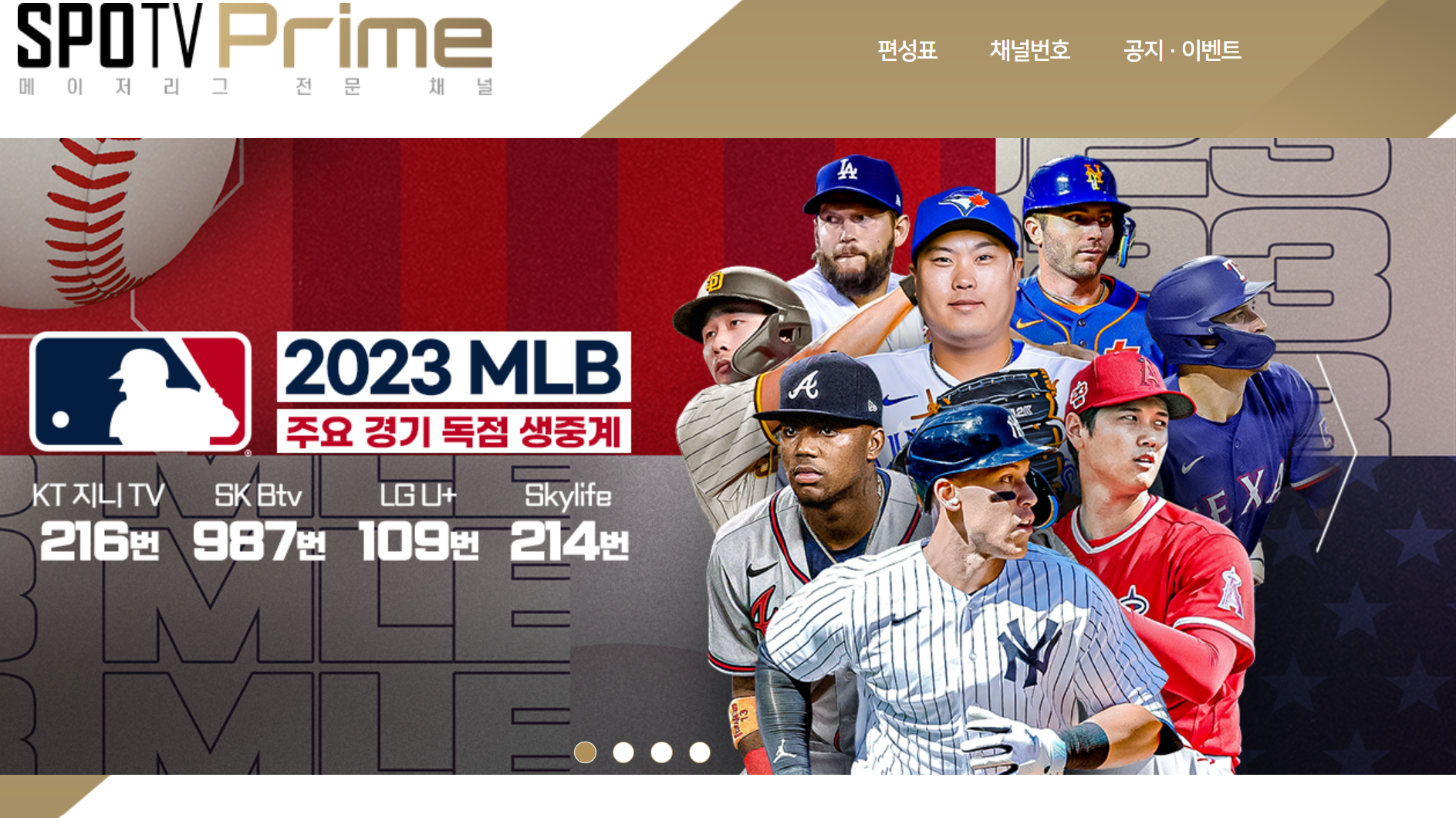 SPOTV의 메이저리그 전문채널로 스포티비 온과 마찬가지로 별도 구매가 필요한 유료채널입니다.
