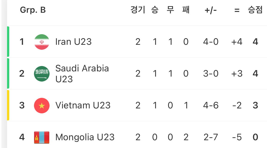 아시안게임 축구 D조 조별리그 순위