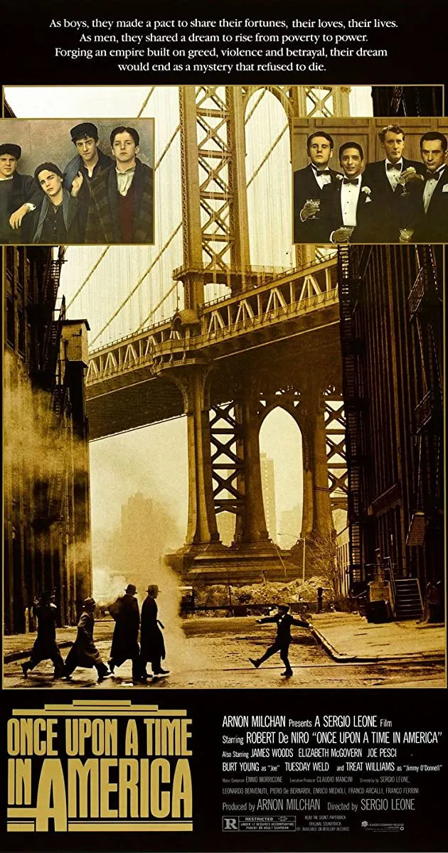 40대 아버지가 반드시 봐야할 영화 일곱번째로 영화원스 어폰 어 타임 인 아메리카(Once Upon a Time in America)는 세르지오 레오네(Sergio Leone) 감독의 장대한 범죄 드라마 영화로 매혹적인 스토리텔링, 화려한 연기, 놀라운 촬영 기법으로 관객을 사로잡습니다. 1984년에 개봉한 이 걸작은 시청자를 20세기 초 뉴욕 시에서 유대인 갱스터 그룹의 삶을 통해 통렬한 여정으로 안내합니다. 이 영화 리뷰에서 우리는 원스 어폰 어 타임 인 아메리카를 영화계에 지울 수 없는 흔적을 계속 남기는 오래 지속되는 고전으로 만드는 시대를 초월한 요소를 탐구합니다.