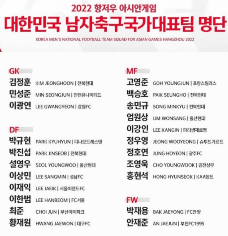- 와일드카드 : 설영우, 박진섭, 백승호